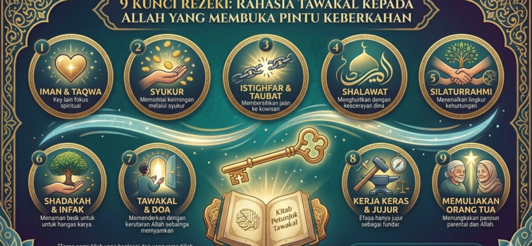 Pelajari 9 kunci rezeki dengan tawakal kepada Allah. Temukan rahasia hidup tenang, cukup, dan penuh keberkahan menurut ajaran Islam. Rezeki adalah salah satu hal yang paling sering dipikirkan manusia. Banyak orang bekerja keras siang dan malam, tetapi masih merasa sempit hidupnya. Sebaliknya, ada yang terlihat sederhana, namun hidupnya penuh ketenangan dan keberkahan.